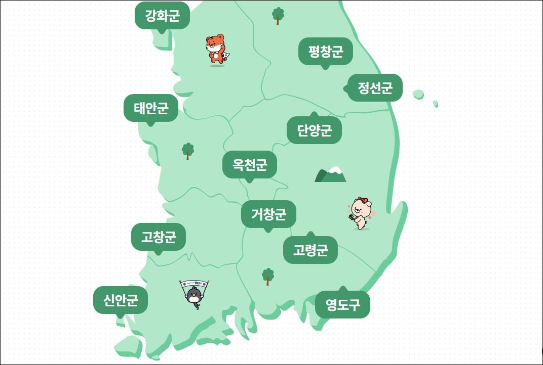 [대한민국 구석구석] 홈페이지에 나오는 지도에서 지역을 누르면 지역별로 제공하는 혜택들을 확인할 수 있어요.