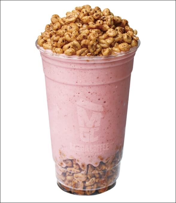 바삭하고 달달한 죠리퐁에 딸기 밀크셰이크를 함께 블렌딩하여 차갑게 즐기는 프라페