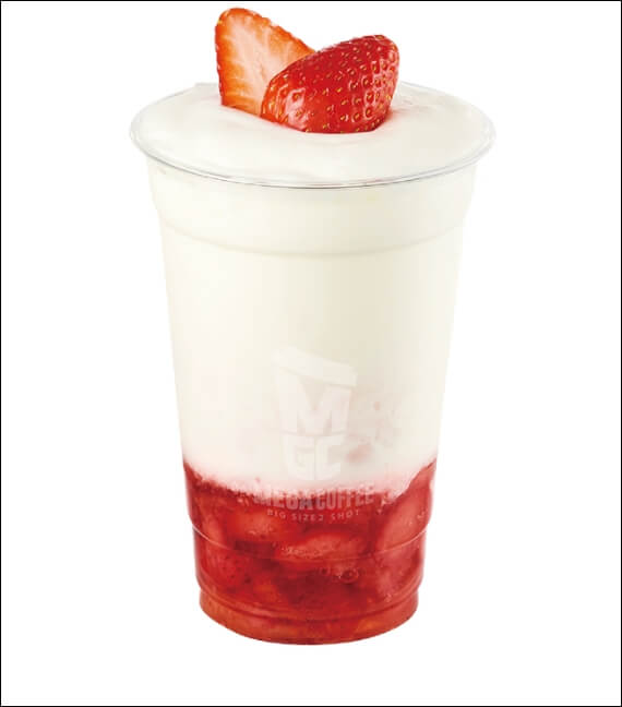 생딸기와 요거트아이스크림, 스무디를 한 번에 즐길 수 있는 음료. 요거프레소 베스트셀러