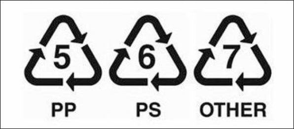 비닐이나 플라스틱류를 보면 아래와 같은 숫자마크가 있습니다. 숫자에 따라 재질이나 소재가 다르며, 이것에 따라 재활용 및 재사용 여부를 알 수 있습니다.