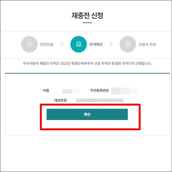 평생교육바우처 우수이용자 재충전 신청방법